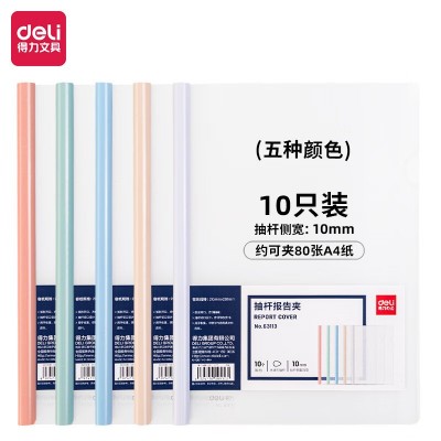 得力(deli)10只A4透明抽杆文件夹 商务会议资料产检收纳 莫兰迪色系63113