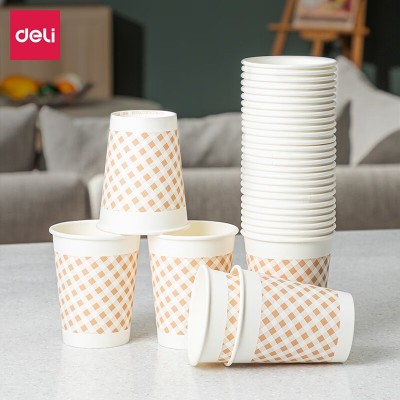 得力(deli)250ml一次性纸杯 木浆纸加厚杯子/水杯 隔热耐高温 100只装 LU220