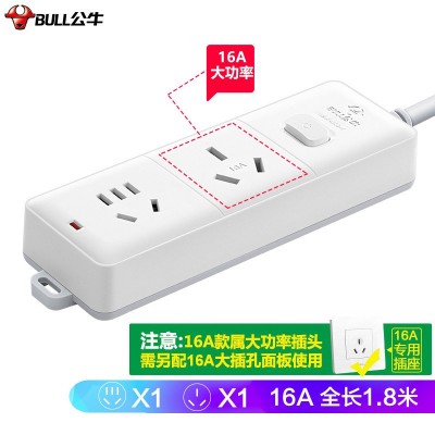 首页 > 建筑建材 > 开关插座 > 公牛(BULL)大功率16A插座/空调插座/插线板/插排/排插/接线板 2位总控全长1.8米 GN-S102D