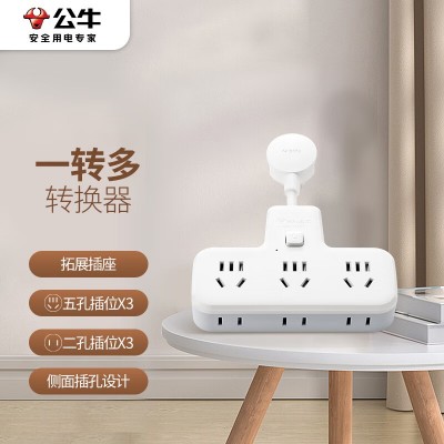 首页 > 建筑建材 > 开关插座 > 公牛(BULL)柔性转换插头/品字形一转六插座/无线转换插座/电源转换器 适用于卧室、厨房 6位总控 GN-9733K