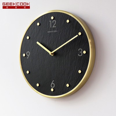 极客库(GeekCook) 轻奢金石之交12寸板岩金属挂钟(典雅黑) GK130071