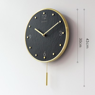 极客库(GeekCook) 轻奢金石之交12寸板岩摇摆挂钟(圆摆金) GK130076