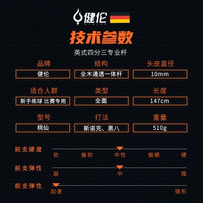 健伦(JEEANLEAN) JL-404Y斯诺克黑八英式小头桌球杆 原木公杆JL-ZQG03