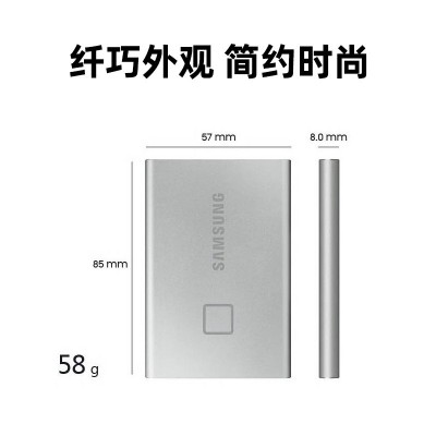 三星(SAMSUNG) 1TB Type-c USB 3.2 移动硬盘 T7 Touch 银色指纹识别