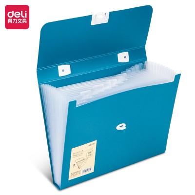 得力(deli)13格A4手提风琴包多层文件夹 浅蓝72593