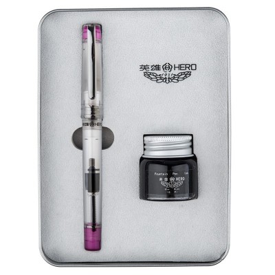 英雄(HERO)钢笔709心水透明铱金钢笔墨水礼盒学生套装透紫SKU:yzwhyp300014