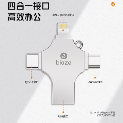首页 > 信息化设备 > 移动存储设备 > 毕亚兹(BIAZE)64GB USB3.0 Lightning Type-C Micro苹果手机U盘 U6 安卓苹果笔记本电脑通用四合一优盘SKU:yzwhyp300033