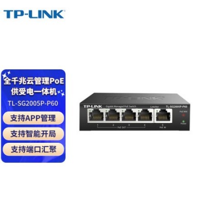 普联(TP-LINK)TL-SG2005P-P60 5口全千兆云管理 PoE供受电一体机 企业级 SKU:yzwhyp100070