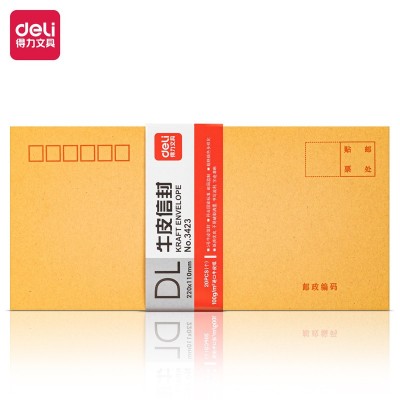 得力3423牛皮信封(米黄色)-5号 DL 220*110mm(20个/包) SKU:yzwhyp100175
