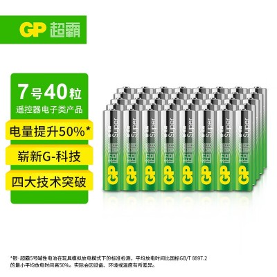 首页 > 电气设备 > 原电池和原电池组 > 超霸(GP)7号电池40粒SKU:yzwhyp300172碱性干电池适用于耳温枪/血氧仪/血压计/血糖仪/鼠标等 AAA/R03SKU:yzwhyp300172
