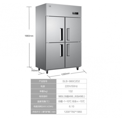 海尔(Haier)SLB-980C2D2 商用厨房冰柜980升 全冷藏冷冻双温冰箱 店饭店餐厅食堂保鲜不锈钢橱柜冷柜SKU:yzwhyp100217