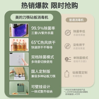 美的(Midea)XSA1K01砧板刀具筷子消杀毒除菌机餐具消毒机智能家用收纳菜板筷子刀架 绿色SKU:yzwhyp200151