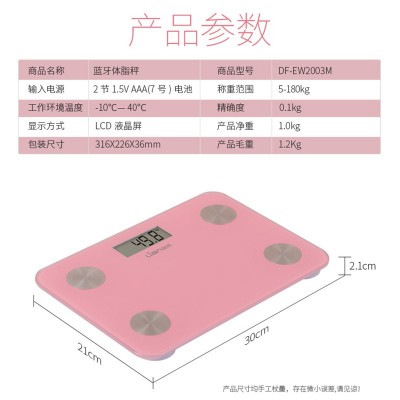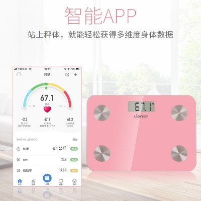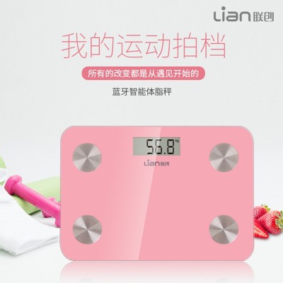 联创(Lian)电子秤 蓝牙智能体脂称人体称重器精准家庭迷你体重计成人健康秤DF-EW2003M 粉色 SKU:yzwhyp200175