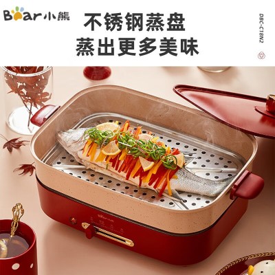 小熊多功能锅 料理锅 家宴锅火锅专用锅多用途锅烤肉锅 家用电火锅蒸煮煎烤涮炒烙一体网红款 C18N2 4L SKU:yzwhyp300415