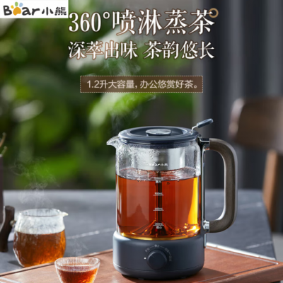 小熊养生壶 1.2L大容量煮茶器煮茶壶 复古式木纹手柄喷淋蒸茶壶泡茶壶 煮茶烧水一体 ZCQ-D12Z3 SKU:yzwhyp300429