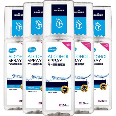海氏海诺 75%酒精消毒液喷雾 乙醇100ml*5瓶 皮肤物品杀菌消毒 SKU:yzwhyp300458