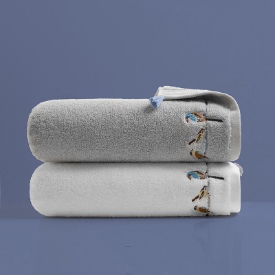 孚日家纺(SUNVIM) 长绒棉国风刺绣大面巾 陶然亭毛巾2条装 (白色+灰色) SKU:yzwhyp200206