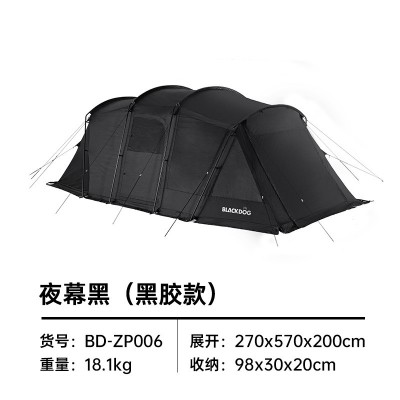 黑狗户外四杆隧道帐篷户外 大空间防雨防风加厚防寒 夜幕黑【黑胶款】 SKU:yzwhyp200265