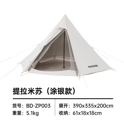 黑狗 户外露营帐篷便携式折叠米色印第安金字塔加厚防暴雨 米色金字塔帐篷 中号米色涂银款 SKU:yzwhyp200269
