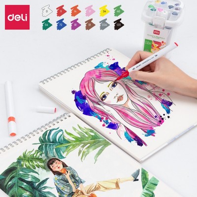 得力70809-12色细三角杆水性软头马克笔(混)(12色/桶) SKU:yzwhyp100325