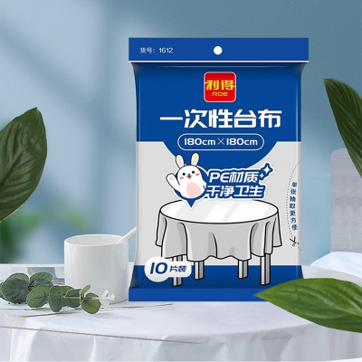 首页 > 装具 > 台布(桌布) > 利得一次性桌布增厚白色台布180cm*180cm*10张厚实不易破塑料防水防油 SKU:yzwhyp300635