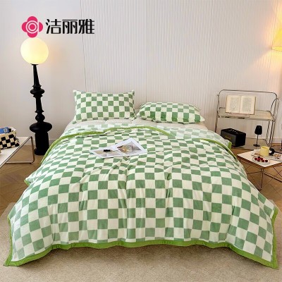 洁丽雅(Grace)A类毛毯加厚法兰绒毯子四季透气空调毯透气毛巾被绿格180*200cm SKU:yzwhyp300663
