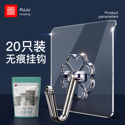 富居挂钩 强力粘钩 厨房免打孔浴室无痕挂钩贴 20只装 SKU:yzwhyp300719