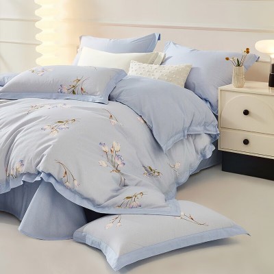 罗莱家纺超柔床品100%纯棉四件套全棉床单被套床上用品 蓝1.8米床 SKU:yzwhyp300771