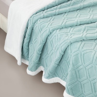 水星家纺毛毯加厚冬天午睡毯子办公室空调毯毛绒毯 200×230 云羽纳瑞 蓝 SKU:yzwhyp300795