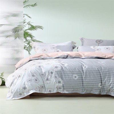 水星家纺床上用品纯棉四件套被套床单印花双人全棉套件1.8米床 花影白汐 SKU:yzwhyp300798