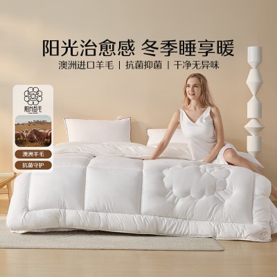 首页 > 装具 > 床罩 > 水星家纺阳光卷毛抗菌51%澳洲进口羊毛双人冬被子约6.4斤200*230cm白 SKU:yzwhyp300807