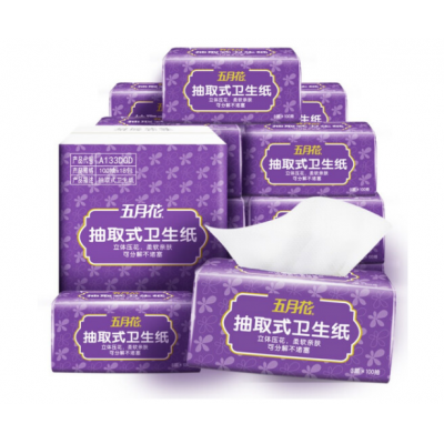 五月花A133D0D抽纸 舒适柔3层100抽*18包/箱装可冲水 单位:箱 SKU:yzwhyp100544