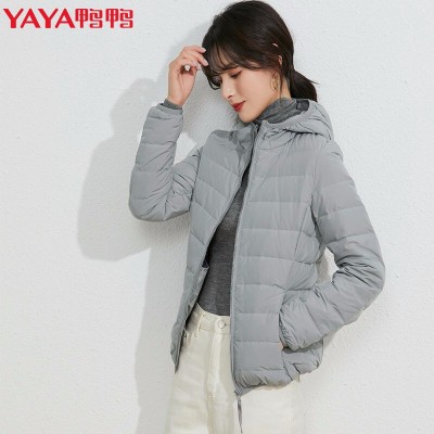 鸭鸭YAYA 轻薄短款连帽羽绒服 DRD06A0050(s-3xl) SKU:yzwhyp200322
