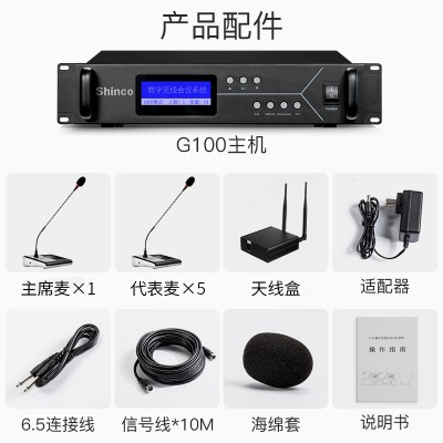 首页 > 广播、电视、电影设备 > 音频设备 > 话筒设备 > 新科(Shinco) G-100手拉手会议系统无线话筒 2.4G数字传输无线鹅颈麦克风大中小型工程会议专用麦 一拖六 SKU:yzwhyp200391