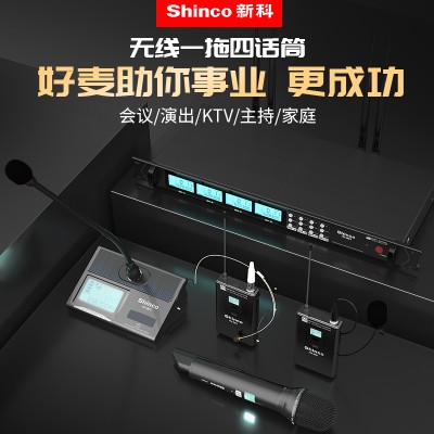 首页 > 广播、电视、电影设备 > 音频设备 > 话筒设备 > 新科(Shinco)HY001 专业一拖四无线话筒会议鹅颈麦领夹头戴耳麦婚庆K歌舞台主持手持麦克风 自由搭配 SKU:yzwhyp200420