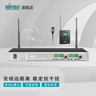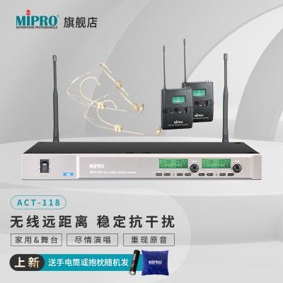 首页 > 广播、电视、电影设备 > 音频设备 > 话筒设备 > MIPRO 咪宝ACT-118一拖二无线唱歌带货专用话筒手机直播录音设备专业舞台演出K歌电容麦克风 配双头戴话筒套装 SKU:yzwhyp200449