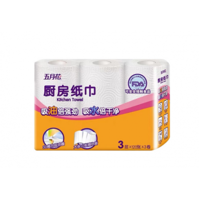 五月花A1A0521/A1A0525厨房卷纸 吸油吸水3层120张3卷/提装 SKU:yzwhyp100647
