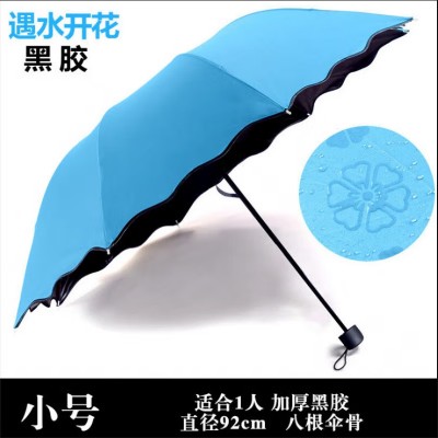 惠寻 8骨雨伞 遇水开花晴雨两用黑胶伞 粉色 SKU:yzwhyp200456
