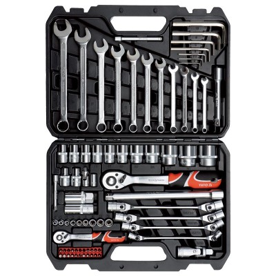 易尔拓(YATO) 棘轮扳手套筒组合套装大小飞1/2组合小飞1/4汽修汽保工具组套1/2"&1/4 77件套 YT-38781 SKU:yzwhyp200532