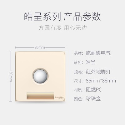 施耐德(Schneider) 施耐德开关插座 皓呈系列珍珠金色 86型墙壁电源插座 红外线感应地脚灯 SKU:yzwhyp200543