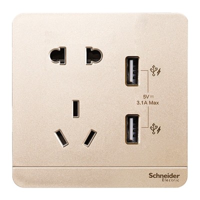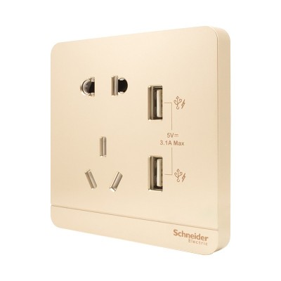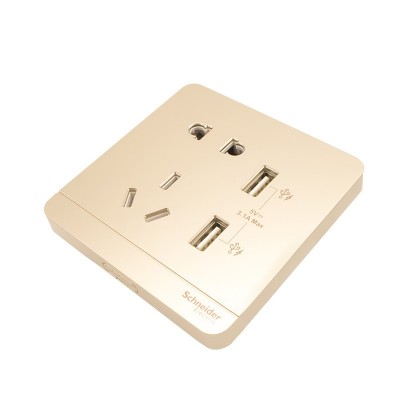 施耐德(Schneider) 施耐德开关插座面板 绎尚系列开关插座 家用86型 暗装插座 金色五孔带双USB SKU:yzwhyp200545