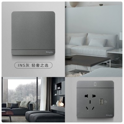 施耐德(Schneider) 施耐德开关插座 绎尚系列荧光灰色插座 墙壁电源插座 二三级插座 单联六类电脑 SKU:yzwhyp200547