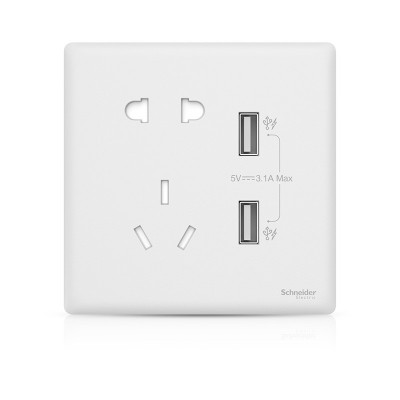 施耐德开关插座 面板墙壁电源插座 家用86型 明装/暗装 五孔带两孔USB插座 3.1A珍铂丝绒白双USB SKU:yzwhyp200552