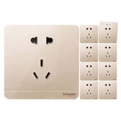 施耐德开关插座面板 家用86型 明装/暗装插座 5孔 五孔电源插座 绎尚系列薄暮金色五孔十只装 SKU:yzwhyp200569