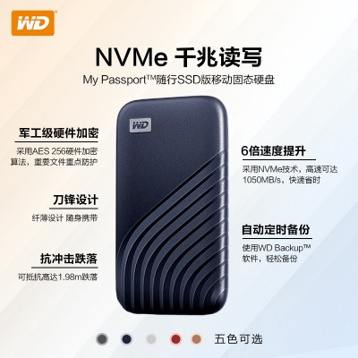 西部数据(WD)2TB NVMe 移动硬盘 宇宙蓝 Type-C接口 WDBAGF0020BBL-CESN SKU:yzwhyp301125