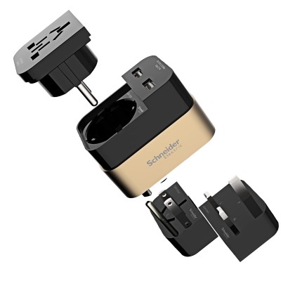 施耐德 多国通用旅行插座 电源转换器 旅行转换插座 旅插 黑金 SKU:yzwhyp200572