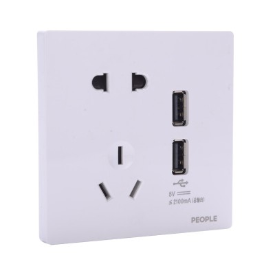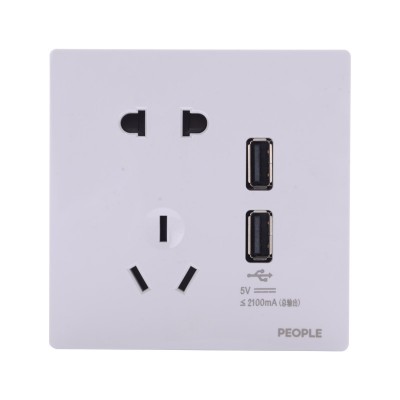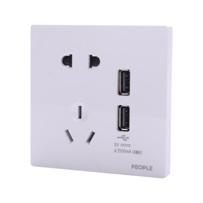 人民电器(PEOPLE) 86型暗装开关插座面板 R86H5系列白色 五孔带二开USB插座 SKU:yzwhyp200581