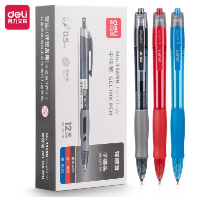 得力33698 臻顺滑办公中性笔0.5mm弹簧头(混)(12支/盒) SKU:yzwhyp301209