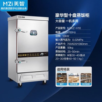 美智(MZi)蒸饭柜蒸饭车蒸箱商用厨房电热蒸柜食堂蒸饭机蒸包炉蒸饭箱蒸馒头包子机大容量电蒸箱 220V/12KW 10盘电热蒸饭柜 SKU:yzwhyp200612