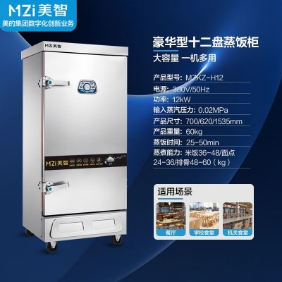 美智(MZi)蒸饭柜蒸饭车蒸箱商用厨房电热蒸柜食堂蒸饭机蒸包炉蒸饭箱蒸馒头包子机大容量电蒸箱 220V/12KW 12盘电热蒸饭柜 SKU:yzwhyp200613